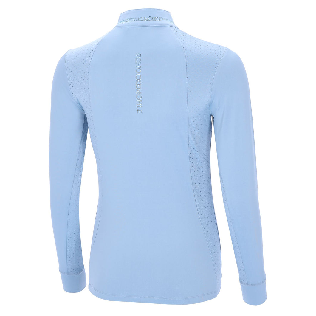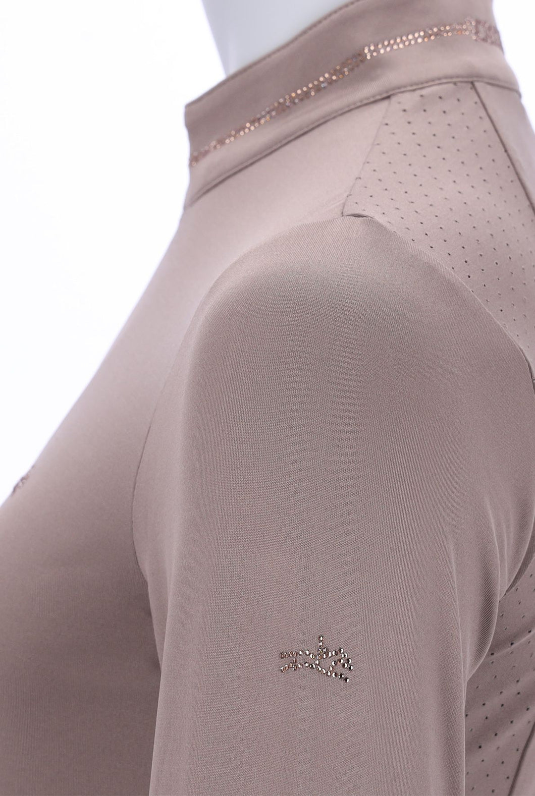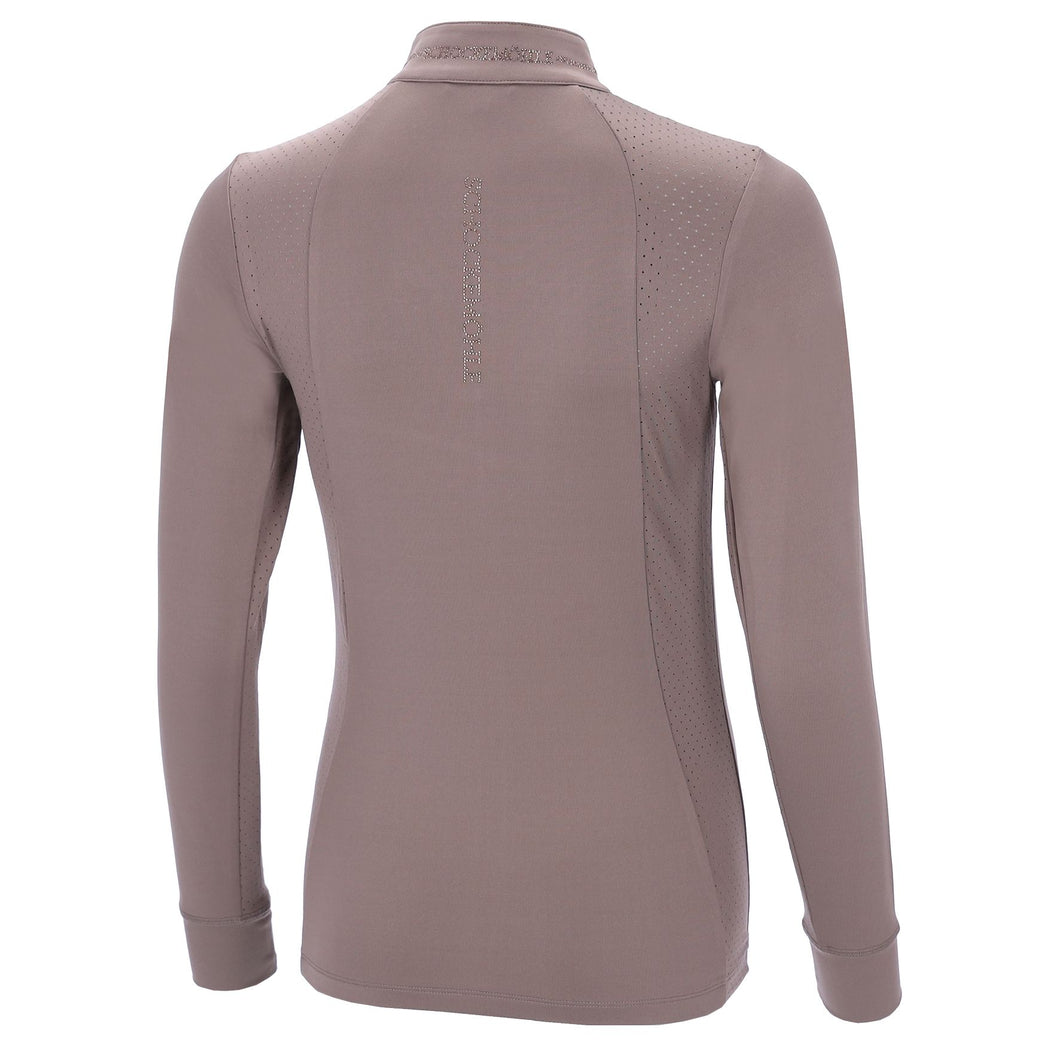 Our breathable women's winter training shirt SPPeppa Style offers you maximum comfort and stylish details for cold days. The long-sleeved shirt is brushed on the inside, providing pleasant warmth and a luxurious feel. Perforated panels on the back and lower sleeves ensure optimal ventilation and freedom of movement during training. The two-piece stand-up collar is decorated with elegant rhinestones, giving the shirt a sophisticated touch. A rhinestone logo motif on the back and a rhinestone horse logo on the chest and sleeve add sparkling accents.