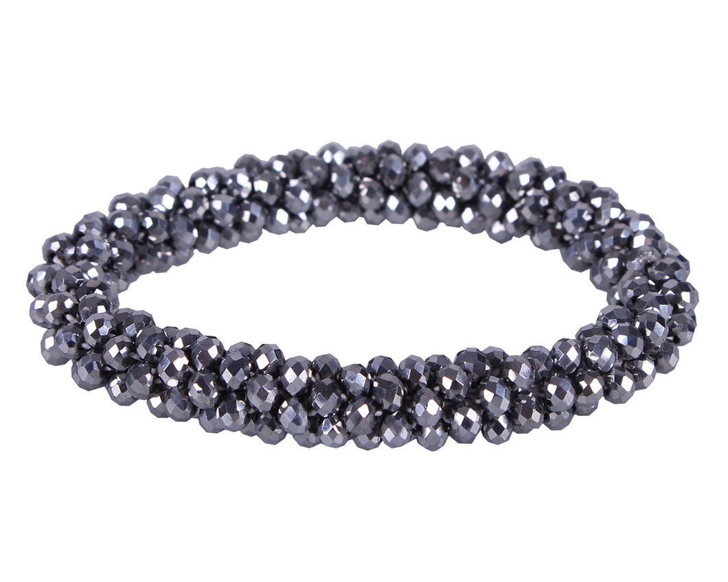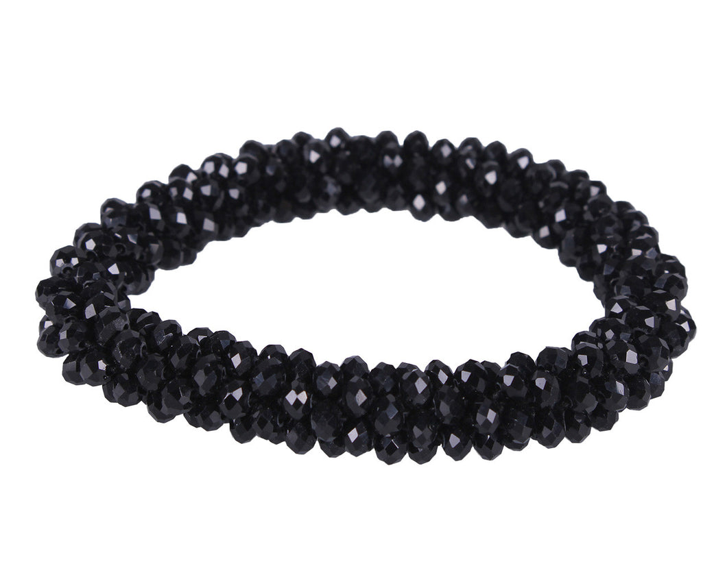 Hair scrunchie strung on sturdy elastic and angular beads with a nice sparkle. The scrunchie can be used as bracelet.